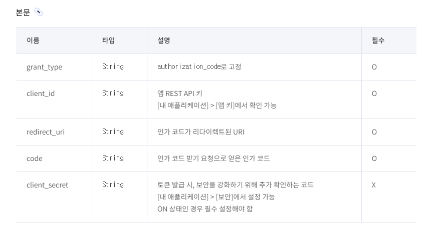 - 카카오인증토큰받기