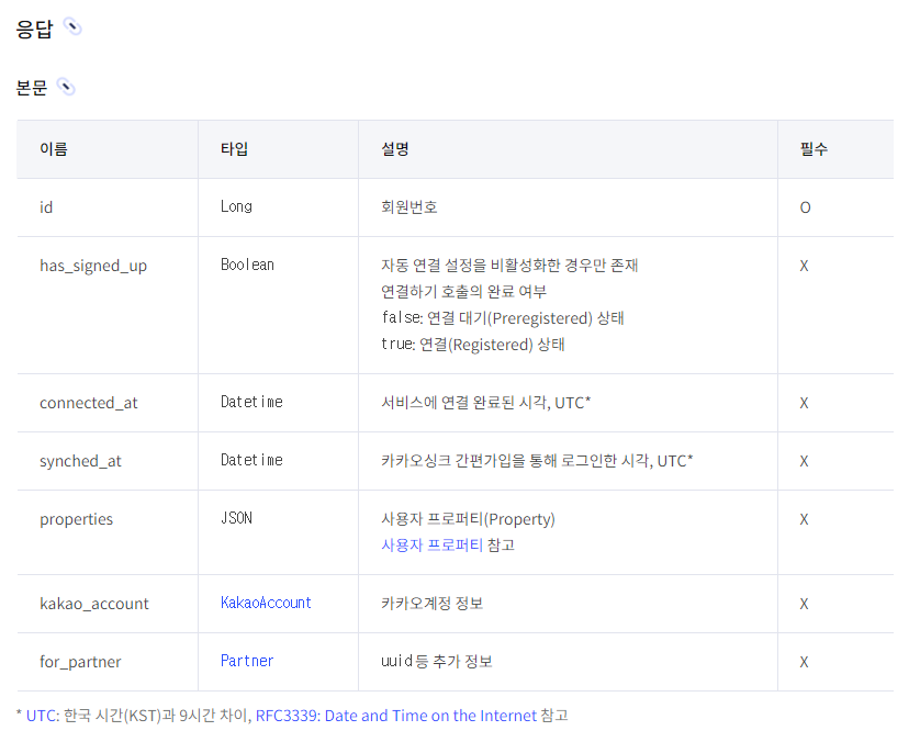 응답 데이터들을 보니 저희가 필요한 데이터는 id와 kakao_account정도인 것 같습니다. kakao_account에 대해서 한번 살펴보죠.