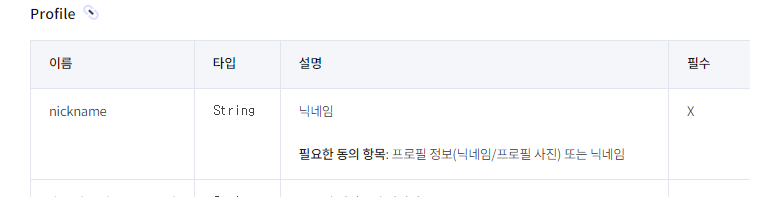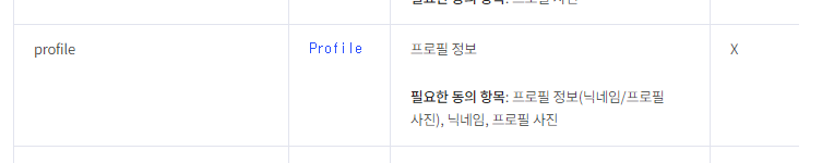 저 같은 경우에는 닉네임을 필수동의항목으로 요청했기 때문에 profile 안에있는