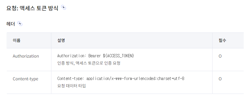 사용자 정보를 가져오기 위해서는 2가지 방식을 카카오에서 제공하고 있습니다. 저희의 경우에는 액세스 토큰을 통해서 사용자 정보를 가져와야합니다.