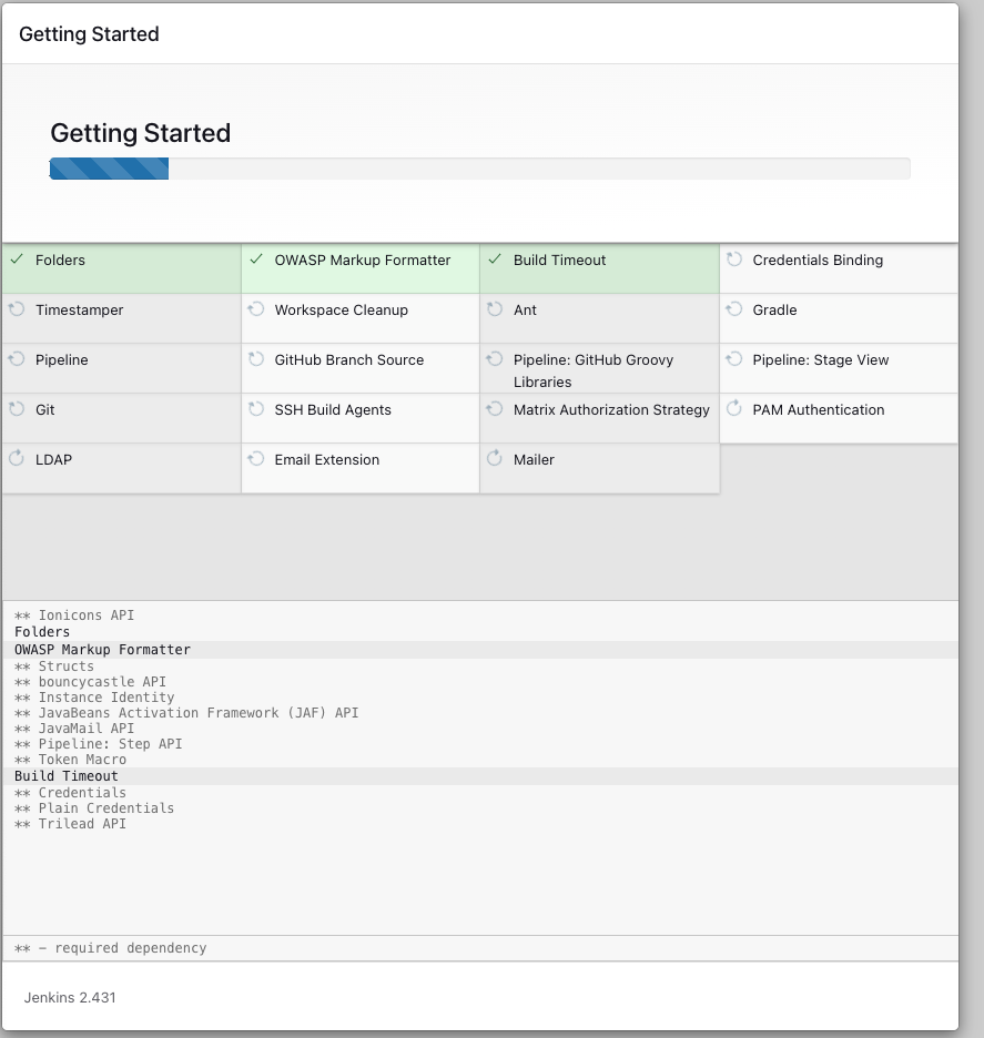 제안된 플러그인 설치를 누르면 아래와 같은 화면이 뜨는데, 다 설치될 때 까지 기달려주면 됩니다.