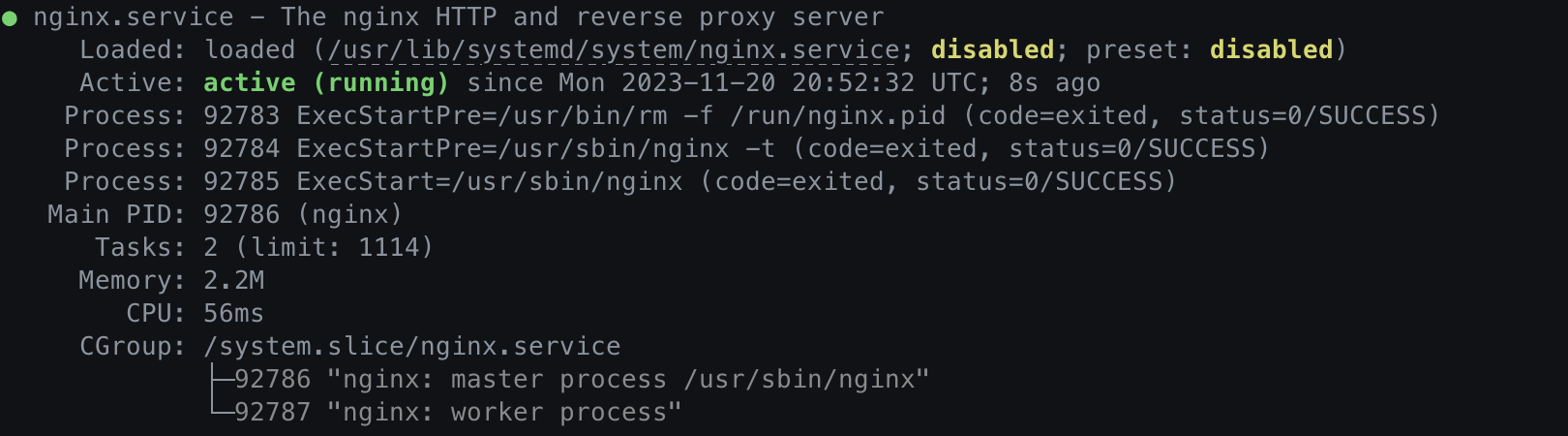 $sudo systemctl status nginx